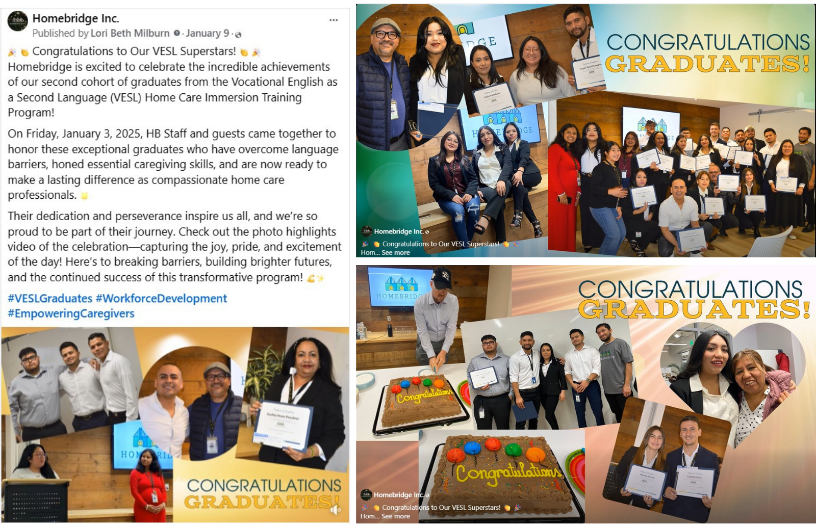 Created communications content to celebrate the graduation of the first cohort of Homebridge’s Vocational English as a Second Language (VESL) Home Care Immersion Training Program, highlighting the power of workforce development, partnership, and caregiver empowerment.