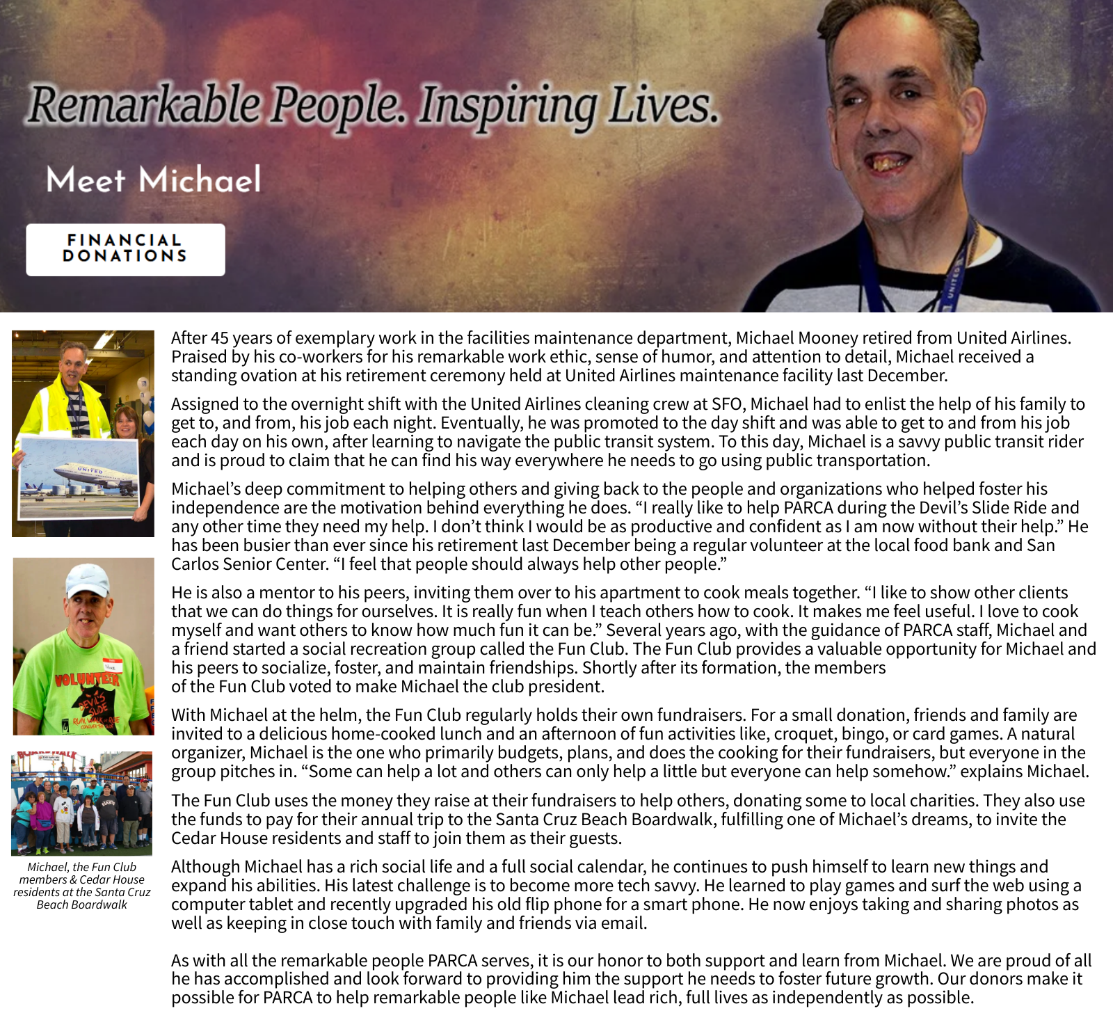 Produced narrative content highlighting independence, dignity, and community connection through the story of Michael, a PARCA community member whose life reflected the impact of consistent support, belonging, and opportunity.